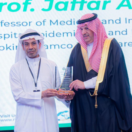 فاز البروفيسور جعفر التوفيق بالجائزة السنوية للجمعية السعودية لأمراض الأطفال المعدية لمساهماته الواسعة في أبحاث الأمراض المعدية.